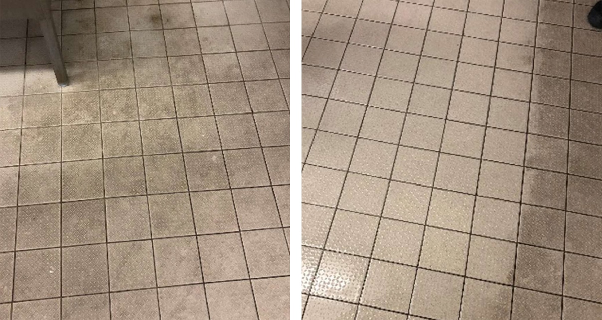 Um die Optik des Fußbodens zu verbessern, wurde zunächst eine zweistufige Grundreinigung mit einem alkalischen und sauren Reiniger vorgenommen und dabei auf den Einsatz des passenden Bürstenmaterials geachtet. Die tägliche Unterhaltsreinigung erfolgt mit einem alkalischen Reiniger in geringer Konzentration.